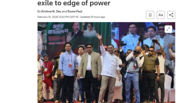 রয়টার্সের প্রতিবেদন লন্ডনে প্রায় দুই দশক নির্বাসনে থাকা বিএনপির চেয়ারম্যান তারেক রহমান দেশের ইতিহাসে অন্যতম গুরুত্বপূর্ণ নির্বাচনে অংশ নিচ্ছেন, মাত্র দুই মাসের মধ্যে ফিরে আসার পর। এবারের নির্বাচন নানা কারণে আরও পড়ুন