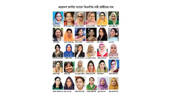 ত্রয়োদশ জাতীয় সংসদের সংরক্ষিত ৫০টি নারী আসনের নির্বাচনে বাংলাদেশ জাতীয়তাবাদী দল (বিএনপি) ও তাদের জোটের জন্য সম্ভাব্য প্রার্থীদের নাম নিয়ে দলীয় অঙ্গনে ব্যাপক আলোচনা শুরু হয়েছে। নির্বাচন কমিশনের ঘোষিত হিসাব অনুযায়ী, এবারের সংরক্ষিত নারী আসনের মধ্যে বিএনপি নেতৃত্বাধীন জোট পেতে যাচ্ছে ৩৬টি আসন, জামায়াতে ইসলামী ও তাদের জোট ১৩টি আসন এবং ১টি আসন স্বতন্ত্র প্রার্থীদের জন্য সংরক্ষিত থাকবে।